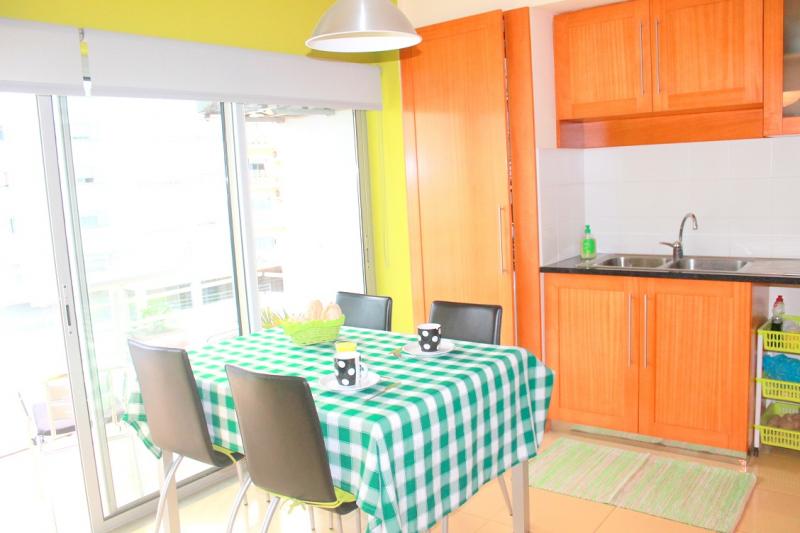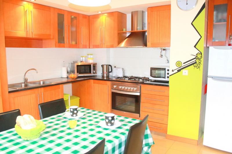 Urban Oceanus RNAL: Localidade Ilha de São Miguel > Ponta Delgada > Ponta Delgada (São Pedro) Zona: São Gonçalo Capacidade: 4 Pessoas Área bruta: 130 m2 Área útil: m2 Descrição: Este apartamento está localizado na zona nobre da cidade de Ponta Delgada, aproximadamente 8 minutos de carro do aeroporto (6,7 km). Situa-se nos arredores do centro histórico da cidade, da avenida atlântica e da marina de Ponta Delgada. À entrada do prédio encontra-se uma caixa ATM, um mini-mercado e outros espaços comercias como padarias e cafés. O apartamento é T1 +1 espaçoso e solarengo. Possui ar condicionado, aquecimento central e Wi-Fi. A sala-de-estar está equipada com uma grande TV, home cinema, TV por cabo com mais de 100 canais e um sofá muito confortável. Numa área anexa à sala-de estar, encontra-se um beliche para duas pessoas havendo também a possibilidade de montar uma cama de casal insuflável. O prédio tem lugar de garagem disponível. |